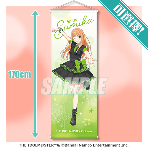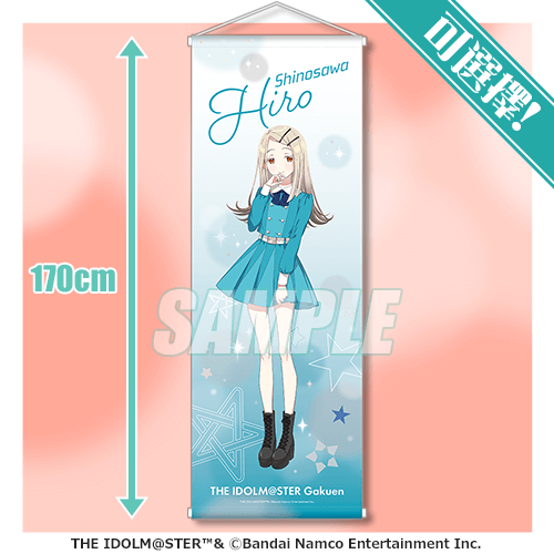 使用「有村麻央」「紫雲清夏」「篠澤 廣」全新繪製插圖為設計的特大掛軸。抽中後可以選擇喜歡的款式。